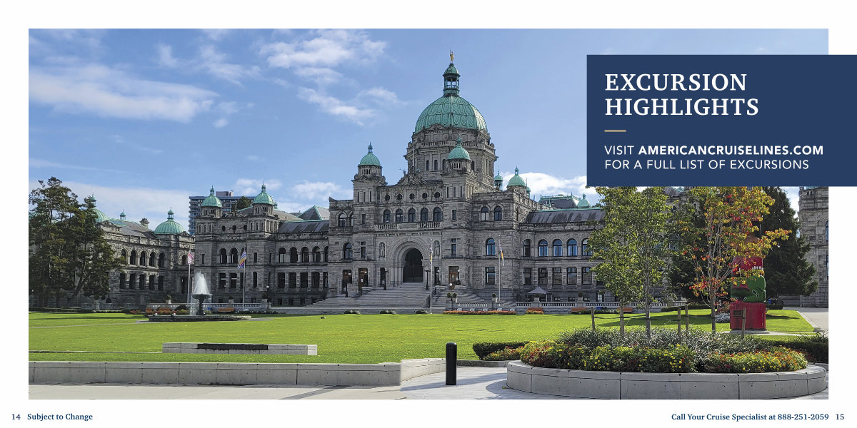 VISIT AMERICANCRUISELINES. COM FOR A FULL LIST OF EXCURSIONS