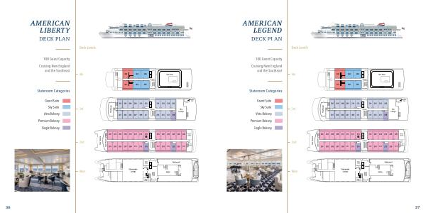 Fitness Center The Study Vestibule 202 204 206 207 209 211 213 208 210 212 214 215 216 217 218 219 220 221 222 223 224 225 226 227 228 201 203 205 Bow Terrace Chart Room Sky Lounge Vestibule Lookout Café Pilothouse 301 303 305 307 302 304 306 308 309 310 311 312 313 314 315 316 317 318 319 320 Sun Deck Vestibule Sky Walk 402 401 403 405 404 406 Ship ’ s Office Chesapeake Lounge Restaurant Vestibule Galley Guest Laundry WC WC Reception Fitness Center The Study Vestibule 202 204 206 207 209 211 213 208 210 212 214 215 216 217 218 219 220 221 222 223 224 225 226 227 228 201 203 205 Bow Terrace Chart Room Sky Lounge Vestibule Lookout Café Pilothouse 301 303 305 307 302 304 306 308 309 310 311 312 313 314 315 316 317 318 319 320 Sun Deck Vestibule Sky Walk 402 401 403 405 404 406 Ship ’ s Office Chesapeake Lounge Restaurant Vestibule Galley Guest Laundry WC WC Reception Fitness Center The Study Vestibule 202 204 206 207 209 211 213 208 210 212 214 215 216 217 218 219 220 221 222 223 224 225 226 227 228 201 203 205 Bow Terrace Chart Room Sky Lounge Vestibule Lookout Café Pilothouse 301 303 305 307 302 304 306 308 309 310 311 312 313 314 315 316 317 318 319 320 Sun Deck Vestibule Sky Walk 402 401 403 405 404 406 Ship ’ s Office Chesapeake Lounge Restaurant Vestibule Galley Guest Laundry WC WC Reception Fitness Center The Study Vestibule 202 204 206 207 209 211 213 208 210 212 214 215 216 217 218 219 220 221 222 223 224 225 226 227 228 201 203 205 Bow Terrace Chart Room Sky Lounge Vestibule Lookout Café Pilothouse 301 303 305 307 302 304 306 308 309 310 311 312 313 314 315 316 317 318 319 320 Sun Deck Vestibule Sky Walk 402 401 403 405 404 406 AMERICAN LEGEND DECK PLAN Stateroom Categories Deck Levels 4th 3rd 2nd Main Vista Balcony Premium Balcony Sky Suite Single Balcony Grand Suite 100 Guest Capacity Cruising New England and the Southeast 37