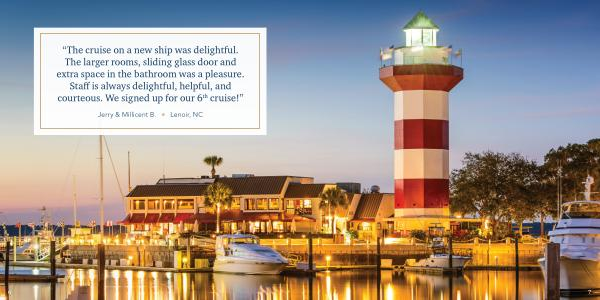 “ The cruise on a new ship was delightful . The larger rooms , sliding glass door and extra space in the bathroom was a pleasure . Staff is always delightful , helpful , and courteous . We signed up for our 6 th cruise !”