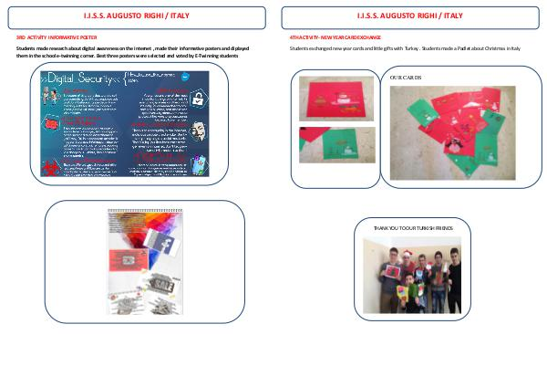 Students exchanged new year cards and little gifts with Turkey . Students made a Padlet about Christmas in Italy