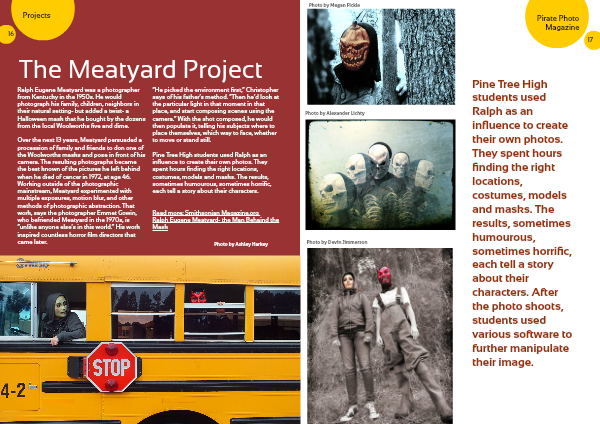 Pine Tree High students used Ralph as an influence to create their own photos. They spent hours finding the right locations, costumes, models and masks. The results, sometimes humourous, sometimes horrific, each tell a story about their characters.