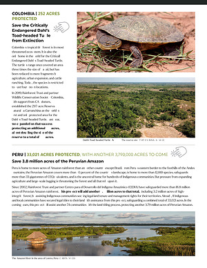 In 2019, Rainforest Trust and partner Wildlife Conservation Society-Colombia, with support from CAF donors, established the 297-acre Reserva Natural La Carranchina as the world’ s first and only protected area for the Dahl’ s Toad-headed Turtle. Last year, we expanded on that success by protecting an additional 252 acres, almost doubling the size of the reserve to a total of 549 acres.