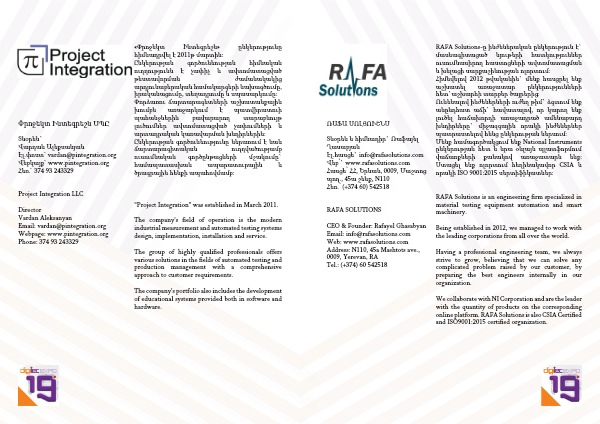Մենք համագործակցում ենք National Instruments ընկերության հետ և նրա օնլայն պլատֆորմում վաճառքների քանակով առաջատարն ենք։ Ստացել ենք ոլորտում հեղինակավոր CSIA և որակի ISO 9001:2015 սերտիֆիկատներ: