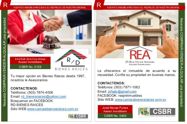 Sitio WEB: www.camarabienesraices.com.sv