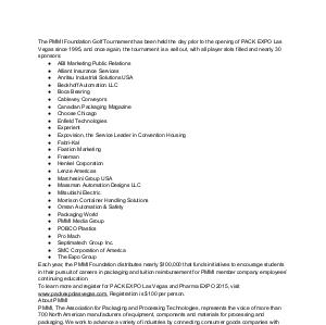 The PMMI Foundation Golf Tournament has been held the day prior to the opening of PACK EXPO Las Vegas since 1995, and once again, the tournament is a sell out, with all player slots filled and nearly 30 sponsors: