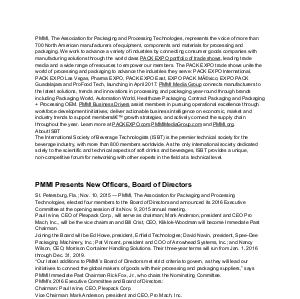 St. Petersburg, Fla.; Nov. 10, 2015 — PMMI, The Association for Packaging and Processing