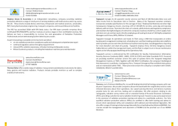 Tracerco , part of Johnson Ma hey Plc , is a world-leading industrial technology company with over 60 years ' experience . We provide companies all over the world with the insights they need to make informed decisions about their opera ons . Our award winning Monitors and Services business provide items for sale and hire , tes ng and re-calibra on . We offer products rela ng to site radiography , radia on survey meters and an extended family of Personal Electronic Dosimeters ( PEDs ), providing a solu on for every radia on monitoring need . Tracerco is also vastly experienced in the provision of radia on protec on training and advice to a worldwide audience . Our fully qualified radia on protec on advisors ( RPAs ) are cer fied to offer both training and advice to ensure client opera onal safety and compliance with na onal and interna onal legisla on . We also offer a range of training to help manage Naturally Occurring Radioac ve Material ( NORM ). Our courses include the management and awareness of NORM and the prac cal use of our NORM Monitors .