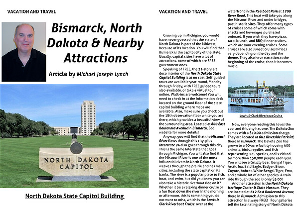 Growing up in Michigan, you would have never guessed that the state of North Dakota is part of the Midwest, because of its location. You will find that Bismarck is the capitol city of the state. Usually, capital cities have a lot of attractions, some of which are FREE government ones.