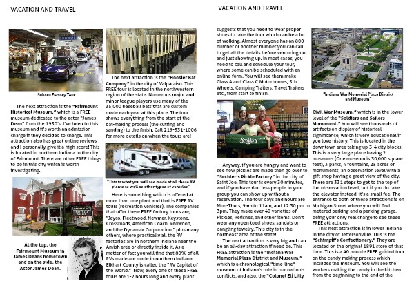 suggests that you need to wear proper shoes to take the tour which can be a lot of walking. Almost everyone has an 800 number or another number you can call to get all the details before venturing out and just showing up. In most cases, you need to call and schedule your tour, where some can be scheduled with an online form. You will see them make Class A and Class C Motorhomes, 5th Wheels, Camping Trailers, Travel Trailers etc., from start to finish.