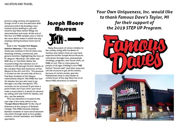 Your Own Uniqueness, Inc. would like to thank Famous Dave's Taylor, MI