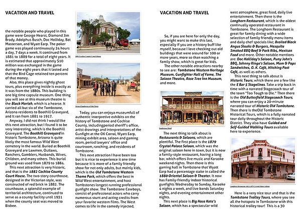 This next thing to talk about is Historic Tours, which there are a few like the E Bar 5 Stagelines. Take a trip back in time with a narrated Stagecoach tour of the town "Too Tough to Die." Then there is the Old Butterfield Stagecoach Tours, where you can enjoy a 20-minute narrated tour of Historic Old Tombstone. Then there is the Old Tombstone Historical Tours, which is a fully narrated tour daily throughout the Historic District. They also have Guided and Self-Guided Walking Tours available here to experience.