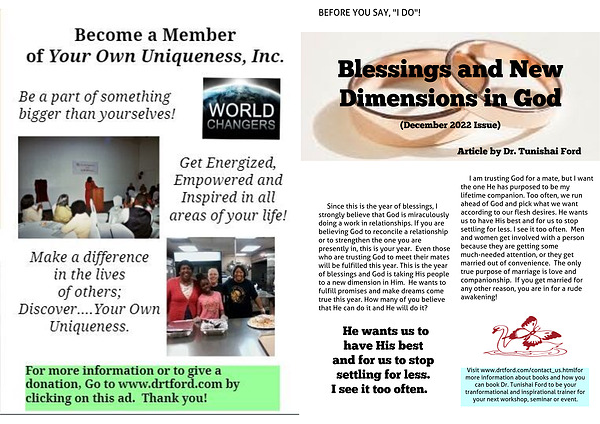Visit www.drtford.com/contact_us.html for more information about books and how you can book Dr. Tunishai Ford to be your tranformational and inspirational trainer for your next workshop, seminar or event.