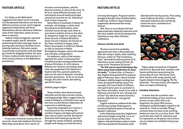 The love connection probably appeared more than a thousand years after the martyrs’ death, when Geoffrey Chaucer, author of “The Canterbury Tales” decreed the February feast of St. Valentinus to the mating of birds. He wrote in his “Parlement of Foules”: