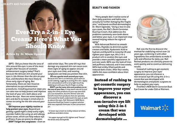 (BPT) - Did you know that the area of skin around the eyes is one of the most sought-after focuses of cosmetic enhancement surgery today? That's because the delicate skin around your eyes is 10x thinner than the skin on your face, and therefore the most likely to show early signs of aging. But fortunately, there are non-invasive alternatives to eye enhancement procedures, including proactive steps you can take now to help protect and improve the look of your skin, both above and below the eye. Here are some important do's and don'ts to keep in mind when it comes to caring for the skin around your eyes: