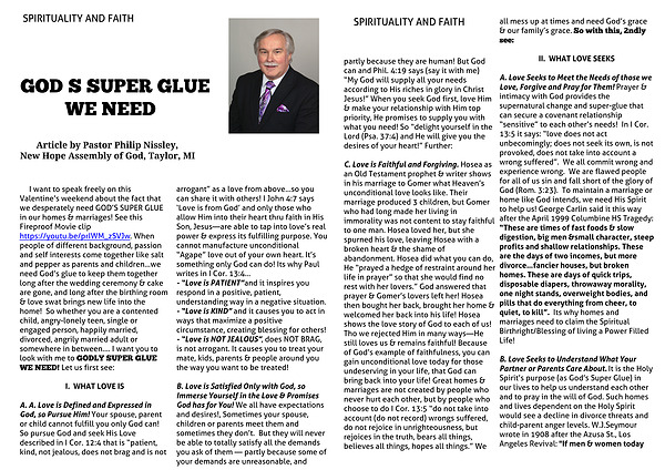 B. Love Seeks to Understand What Your Partner or Parents Care About. It is the Holy Spirit’s purpose (as God’s Super Glue) in our lives to help us understand each other and to pray in the will of God. Such homes and lives dependent on the Holy Spirit would see a decline in divorce threats and child-parent anger levels. W.J.Seymour wrote in 1908 after the Azusa St., Los Angeles Revival: "If men & women today