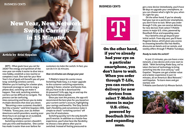 In just 15 minutes, you can have a new network, a new device and a new start to 2026. "With Switching Made Easy, we've taken the best of technology to bring switching into the 21st century," said Gopalan. "Anyone can get a better value and a better experience in just 15 minutes, all on America's Best Network," said Gopalan. To learn more and get started, visit T-Mobile.com/Switch/15-Minute-Switch.