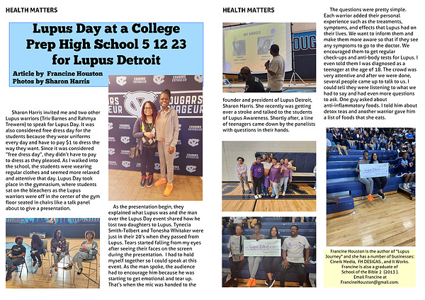 founder and president of Lupus Detroit, Sharon Harris. She recently was getting over a stroke and talked to the students of Lupus Awareness. Shortly after, a line of teenagers came down by the panelists with questions in their hands.
