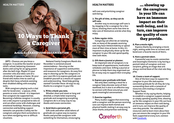 National Family Caregivers Month this November is centered around connectedness - focusing on the importance of supportive communities and resources for caregivers. An easy first step in showing up for the caregivers in your own life is to express gratitude and establish yourself as a means of support and understanding. Need help getting started? Consider these 10 ways to say thanks to a caregiver in your life: