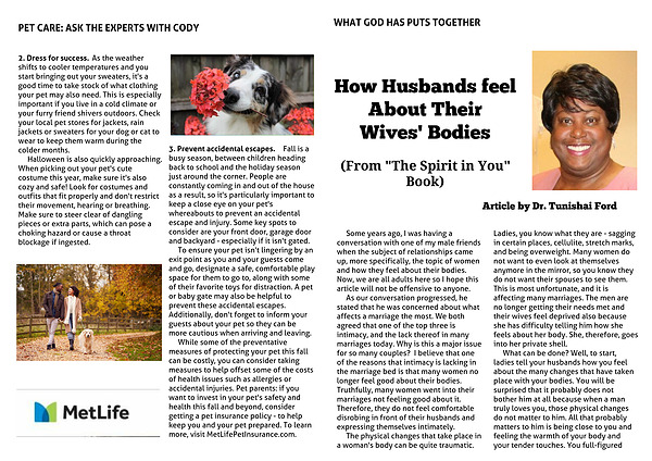 As our conversation progressed, he stated that he was concerned about what affects a marriage the most. We both agreed that one of the top three is intimacy, and the lack thereof in many marriages today. Why is this a major issue for so many couples? I believe that one of the reasons that intimacy is lacking in the marriage bed is that many women no longer feel good about their bodies. Truthfully, many women went into their marriages not feeling good about it. Therefore, they do not feel comfortable disrobing in front of their husbands and expressing themselves intimately.