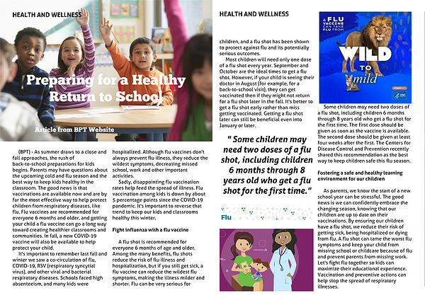As parents, we know the start of a new school year can be stressful. The good news is we can confidently embrace the changing season, knowing that our children are up to date on their vaccinations. By ensuring our children have a flu shot, we reduce their risk of getting sick, being hospitalized or dying from flu. A flu shot can tame the worst flu symptoms and keep your child from missing school or childcare because of flu and prevent parents from missing work. Let's fight flu together so kids can maximize their educational experience. Vaccination and preventive actions can help stop the spread of respiratory illnesses.