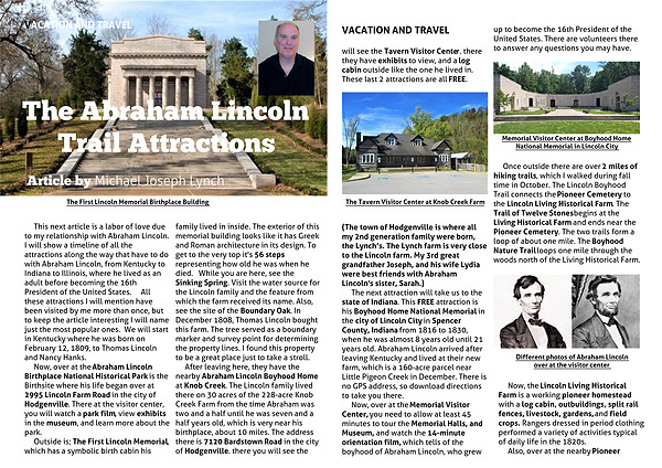 (The town of Hodgenville is where all my 2nd generation family were born, the Lynch’s. The Lynch farm is very close to the Lincoln farm. My 3rd great grandfather Joseph, and his wife Lydia were best friends with Abraham Lincoln's sister, Sarah.)