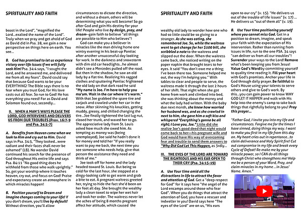 God can make you a believer in miracles like the man driving home one wintry evening in his beat-up Pontiac after another unsuccessful day looking for work. In the darkness and snowstorm with dim old car headlights…he almost didn’t see a Mercedes pulled off the road. But then in the shadow, he saw an old lady by a flat tire. Realizing his ragged clothes and sputtering Pontiac frightened the old lady on that dark road he said “My name is Joe. I’m here to help you ma’am. Wait in the car where it’s warm.” With that Joe grabbed the spare tire and carjack and crawled under her car in the snow. After skinning his knuckles, getting muddy, greasy, and chilled changing the tire…Joe finally tightened the last lug nut, closed her trunk, and waved her to go. The appreciative lady from St. Louis asked how much she owed him. As tempting as money was (being unemployed), Joe said he hadn’t done it for money and told her “If you really want to pay me back, the next time you see someone who needs help, give that person the assistance they need and think of me."
