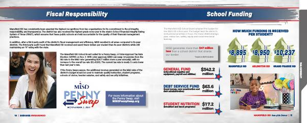 In addition , after a third-party audit of the district ’ s fiscal management and efficiency , MISD excelled in all areas compared to its peer districts . The third-party audit found that Mansfield ISD received and spent fewer dollars per student than its peer districts while still maintaining an “ A ” rating with the state .