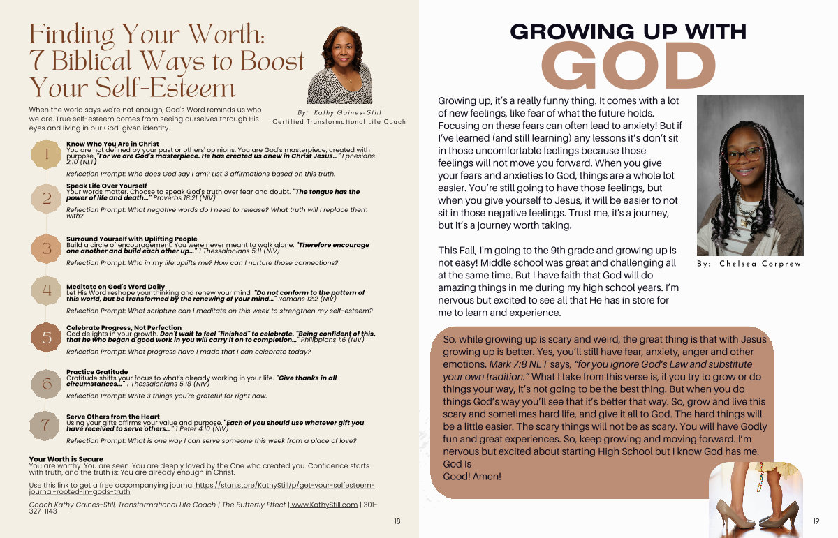 This Fall, I ' m going to the 9th grade and growing up is not easy! Middle school was great and challenging all at the same time. But I have faith that God will do amazing things in me during my high school years. I’ m nervous but excited to see all that He has in store for me to learn and experience.