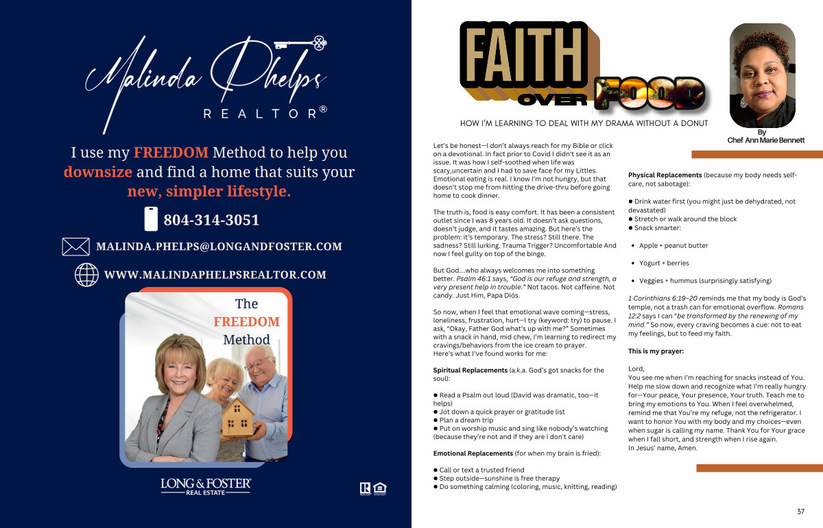 1 Corinthians 6:19 – 20 reminds me that my body is God’ s temple, not a trash can for emotional overflow. Romans 12:2 says I can“ be transformed by the renewing of my mind.” So now, every craving becomes a cue: not to eat my feelings, but to feed my faith.