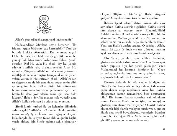 Hüdavendigar Mevlana şöyle buyurur : “ İki irfanın , aşığın birbirine baş kesmesidir .” Yani bir birinde Hakk ’ ı görmesidir . Bu ne mana taşır ? Onlar birbirlerini Hakk olarak gördükten ve bu gerçeği bildikten sonra birbirlerine İhlas-ı Şerif ’ i okurlar . ‘ Kul Hu valla Hu ehad - Ey kul yemin ederim o Allah için , o ehad sensin ; Allah Hu samed - Dünyada Allah ’ tan daha mert yoktur , o mertliği de sana vermiştir ; Lem yelid velem yuled velem yekun le Hu küfüven ehad - Allah ’ ım sen ne doğarsın ne de bir tane daha doğar senin gibi , ey sevgilim , bana sıdk-ı bütün bir münacatta bulunursan , sana bir zarar gelmemesi için , ben bütün bu alemi yok ederim senin için , seni baki kılarım .’ İhlas-ı Şerif ’ in manası çok yücedir ama Allah ’ a kulluk edersen bu sıfata nail olursun .