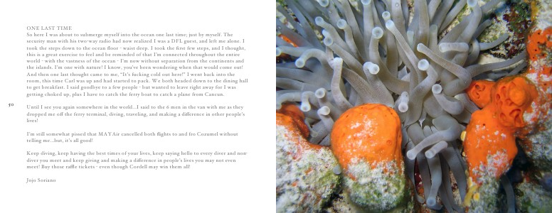 Keep diving, keep having the best times of your lives, keep saying hello to every diver and non! diver you meet and keep giving and making a di " erence in people’ s lives you may not even meet! Buy those ra & e tickets! even though Cordell may win them all!
