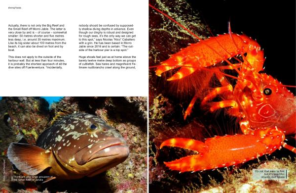 This does not apply to the outside of the harbour wall . But at less than four minutes , it is probably the shortest approach of all the dive sites off Fuerteventura . “ Incidentally , nobody should be confused by supposedly shallow diving depths in advance . Even though our dinghy is robust and designed for rough seas , it ’ s the only way we can get to this spot ,” says Nicolas “ Nico ” Caballero with a grin . He has been based in Morro Jable since 2016 and is certain : “ The outside of the harbour pier is a top spot .”