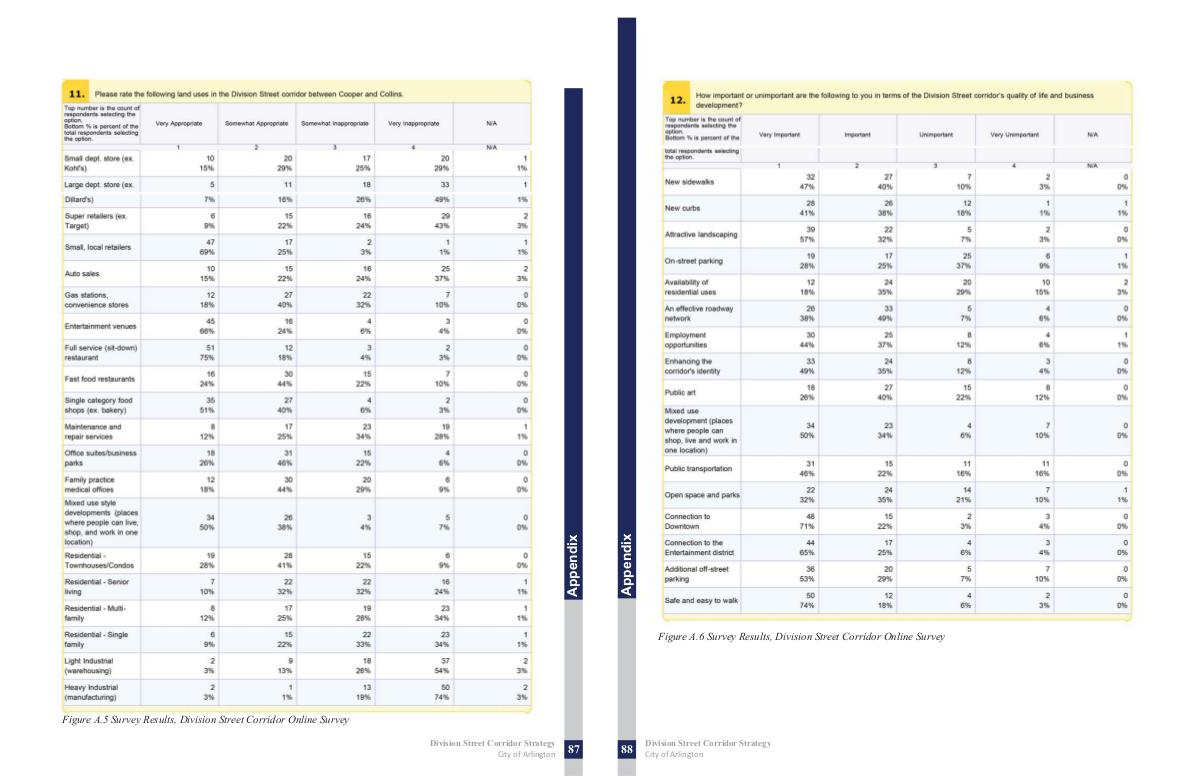 Figure A.6 Survey Results, Division Street Corridor Online Survey 88 Division Street Corridor Strategy City of Arlington
