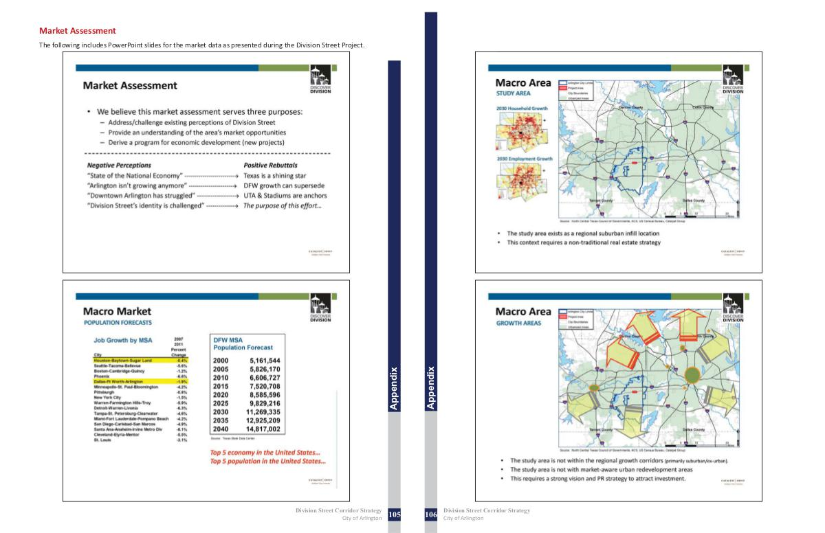 The following includes PowerPoint slides for the market data as presented during the Division Street Project.