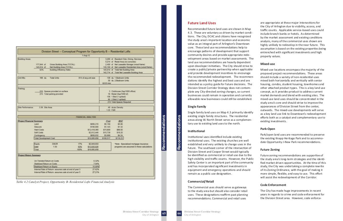 Table 4.2 Catalyst Project, Opportunity B- Residential Lofts Financial Analysis Division Street Corridor Strategy City of Arlington 65