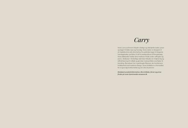 Vores carry sortiment tilbyder alsidige og slidstærke tasker, poser og bager til både rejse og hverdag. Vores tasker er designet til at imødekomme alle dine behov, fra praktiske bager til elegante hverdagstasker, perfekte til alt fra weekendture til fitnessbesøg. Vores køletasker holder dine madvarer friske under udflugter og picnic. Stofposer i forskellige størrelser tilbyder en miljøvenlig og stilfuld løsning til indkøb og ærinder med perfekte overflader til branding. Derudover har vi genbrugte filtposer, der kombinerer holdbarhed med moderne design. Vores kollektion er fremstillet for at give dig funktionalitet og stil i alle situationer.