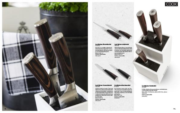 Erittäin käytännöllinen puukuituinen veitsitukki, joka soveltuu kaiken kokoisille veitsille. Koko: teline 13x16x24 cm, yläosa 8,5x13 cm, alaosa 3,5x13 cm Pakkaus: lahjalaatikko Hinta: 45 €