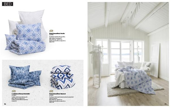 Puuvilla pussilakanasetti siksak-kuviolla. Neutraalit värit sininen ja harmaa. Koko: 50x60 cm, 150x210 cm Pakkaus: banderollilla muovipussissa Hinta: 47 €