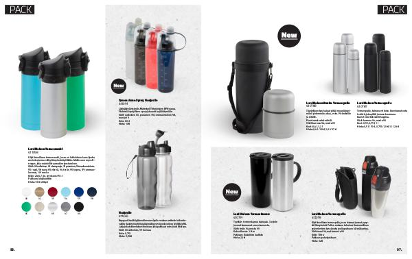 Termospullo, kolmea eri koko. Ruostumatonta terästä, joka pitää juoman kuumana. Kansi toimii kätevästi kuppina. Värit: harmaa 94, musta 99 Koot: 0,5 l, 0,75 l, 1 l Hinta: 0,5 l / 15 €, 0,75 l / 20 €, 1 l / 23 €