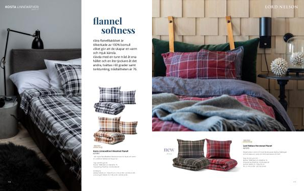 Våra flanellbäddset är tillverkade av 100 % bomull vilket gör att de skapar en varm och mjuk känsla . Vävda med en tunn tråd åt ena hållet och en lite tjockare åt det andra , tvättas i 60 grader samt torktumling , trådtätheten är 76 .