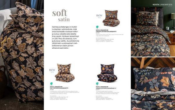 Satiinipuuvillakangas on kudottu käyttäen satiinisidosta , mikä antaa kankaalle mukavan kiillon ja tuntuu viileältä sekä sileältä ihoa vasten . Kankaan lankatiheys on 200 . Pesu 60 asteessa , rumpukuivaus sallittu . Suosittelemme silittämään vuodevaatteet mahdollisimman sileän pinnan aikaanansaamiseksi .