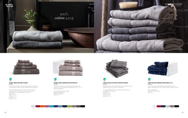 Setti on 550 g / m ² puuvillaa ja sisältää kaksi käsipyyhettä 50x70 cm ja kaksi suihkupyyhettä 65x130 cm . Valitse suosikkisi kuudesta eri väristä .
