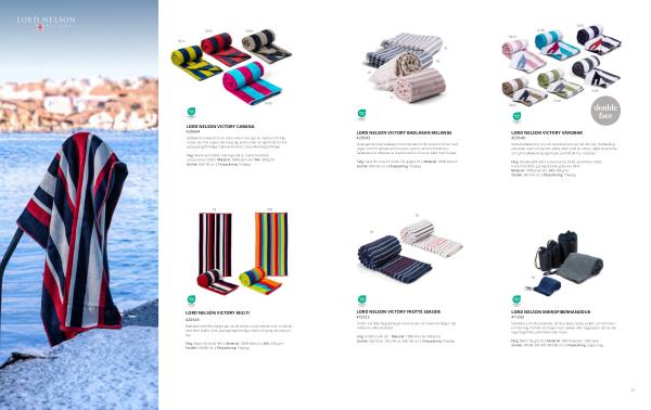 Färg : Marin / sand 5803 , marin / gul 5812 , marin / röd 5835 , turkos / cerise 5430 | Material : 100 % bomull | Vikt : 400 g / m 2 Storlek : 80x160 cm | Förpackning : Polybag
