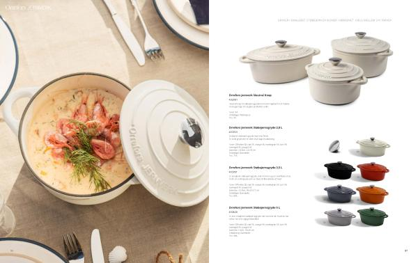 GRYDER I EMALJERET STØBEJERN ER IKONER I KØKKENET . VÆLG MELLEM SYV FARVER