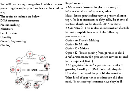 Ideas: latest genetic discovery to prevent disease, top 5 foods to maintain healthy cells, Biochemcial warfare-should we be afraid?, DNA in crime,
