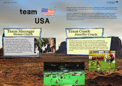 After two editions of the WAO the USA team collected 28 medals. This year the team manager and coach are Susan and Jennifer Cranck from the IncrediPAWS Dog Training of Columbus, Ohio.