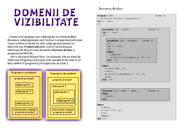 Corpul unui program sau subprogram se numeste bloc. Deoarece subprogramele sunt incluse in programul principal si pot contine la rindul lor alte subprograme,rezulta ca blocurile pot fi imbricate(inlus unul in altul).Aceasta imbricare de blocuri este denumita structura de bloc a programului PASCAL.