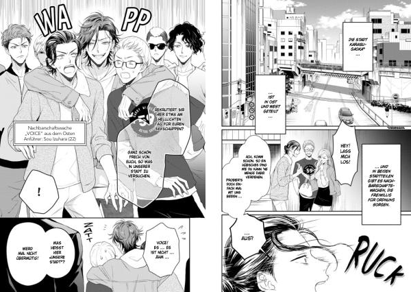 Rekrutiert ihr Rekrutiert ihr hier etwa am hier etwa am helllichten helllichten Tag für euren Tag für euren Sexschuppen ? Sexschuppen ? Ganz schön Ganz schön frech von frech von euch , so was euch , so was in unserer in unserer Stadt zu Stadt zu versuchen . versuchen . Nachbarschaftswache „ VOICE “ aus dem Osten Anführer : Sou Izuhara ( 22 ) ! Voice ! Es … es ist nicht … ähm … Was heisst hier „ unsere Stadt “? Werd mal nicht übermütig !