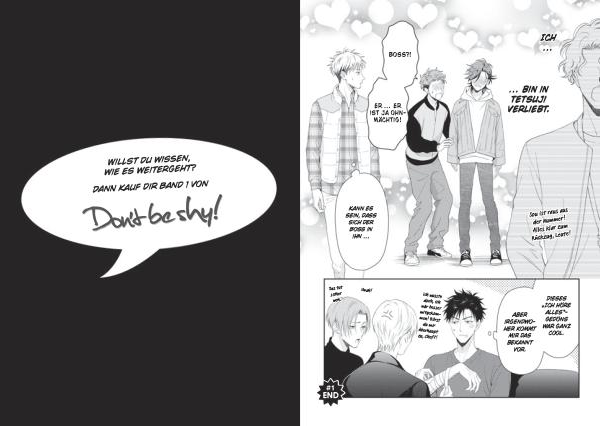 Ich Ich … … bin in … bin in Tetsuji Tetsuji verliebt . verliebt . Sou ist raus aus Sou ist raus aus der Nummer ! der Nummer ! Alles klar zum Alles klar zum Rückzug , Leute ! Rückzug , Leute ! Boss ?! Er … Er ist ja ohnmächtig ! Kann es Kann es sein , dass sein , dass sich der sich der Boss in Boss in ihn … ihn … Dieses Dieses „ Ich höre „ Ich höre alles “ - alles “ - Gedöns Gedöns war ganz war ganz cool . cool . Aber Aber irgendwoirgendwoher kommt her kommt mir das mir das bekannt bekannt vor . vor . Ich wusste Ich wusste doch , ich doch , ich wär besser wär besser mitgekommitgekommen ! Hörst men ! Hörst du mir du mir überhaupt überhaupt zu , Chef ?! zu , Chef ?! Uwah ! Uwah ! Das tut Das tut sicher sicher weh . weh .