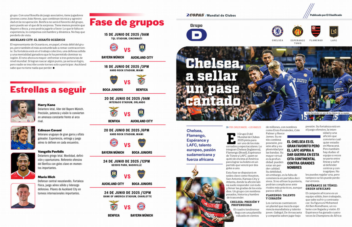El Grupo D del Mundial de Clubes 2025 pinta para ser uno de los más cerrados y espectaculares. Lo integran Chelsea( Inglaterra), Flamengo( Brasil), Espérance de Túnez y LAFC, quien se quitó de encima al América para lograr su boleto en un partido que venció por dos goles a uno.